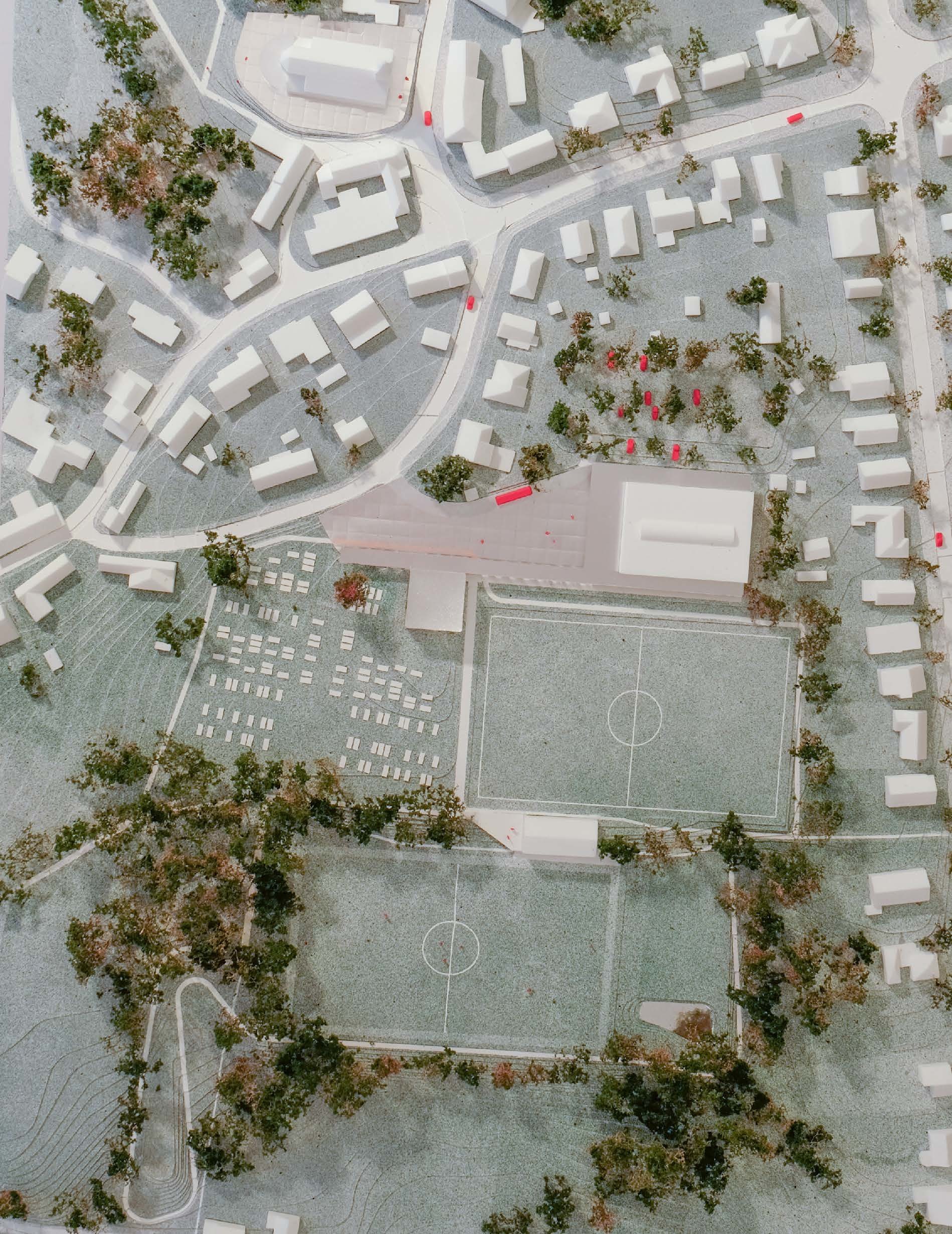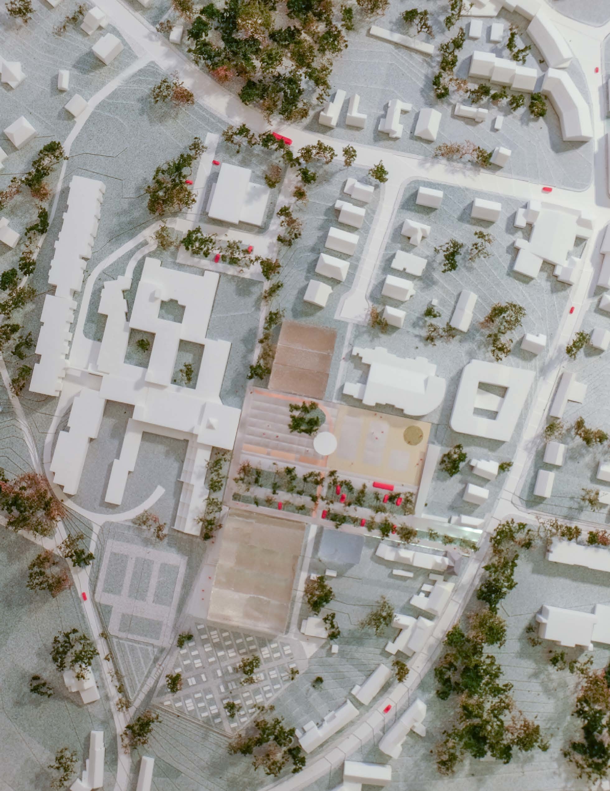 In Itterbeek, a new square is created by bringing all the remaining spaces together in the centre of the site, where the old, dilapidated recreation centre will disappear to make way for this central square.