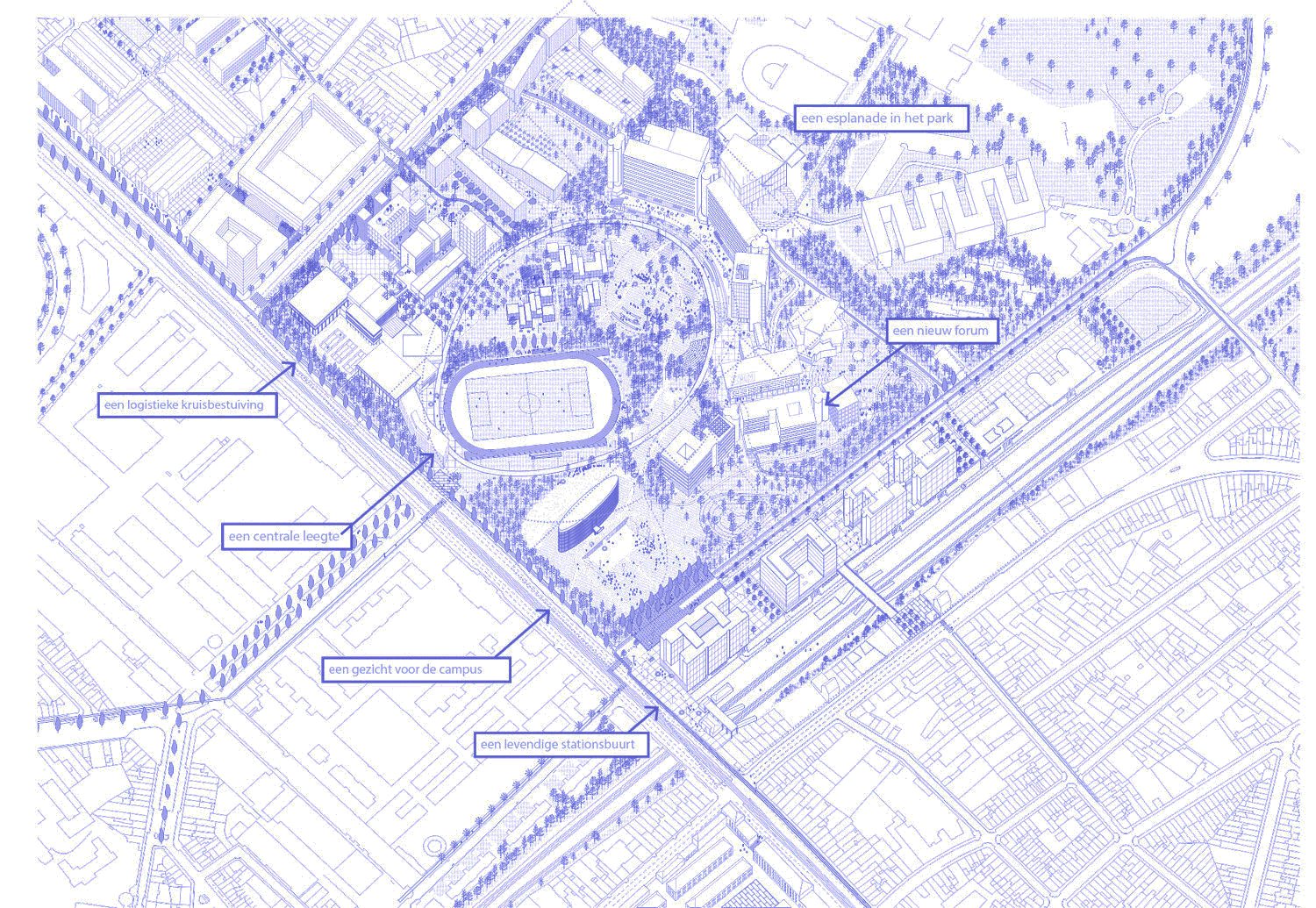 The growth of the VUB and the need for more space went hand in hand with many ad hoc developments on Etterbeek Campus. In order to make the campus sustainable, the challenge here was to draw up a masterplan.